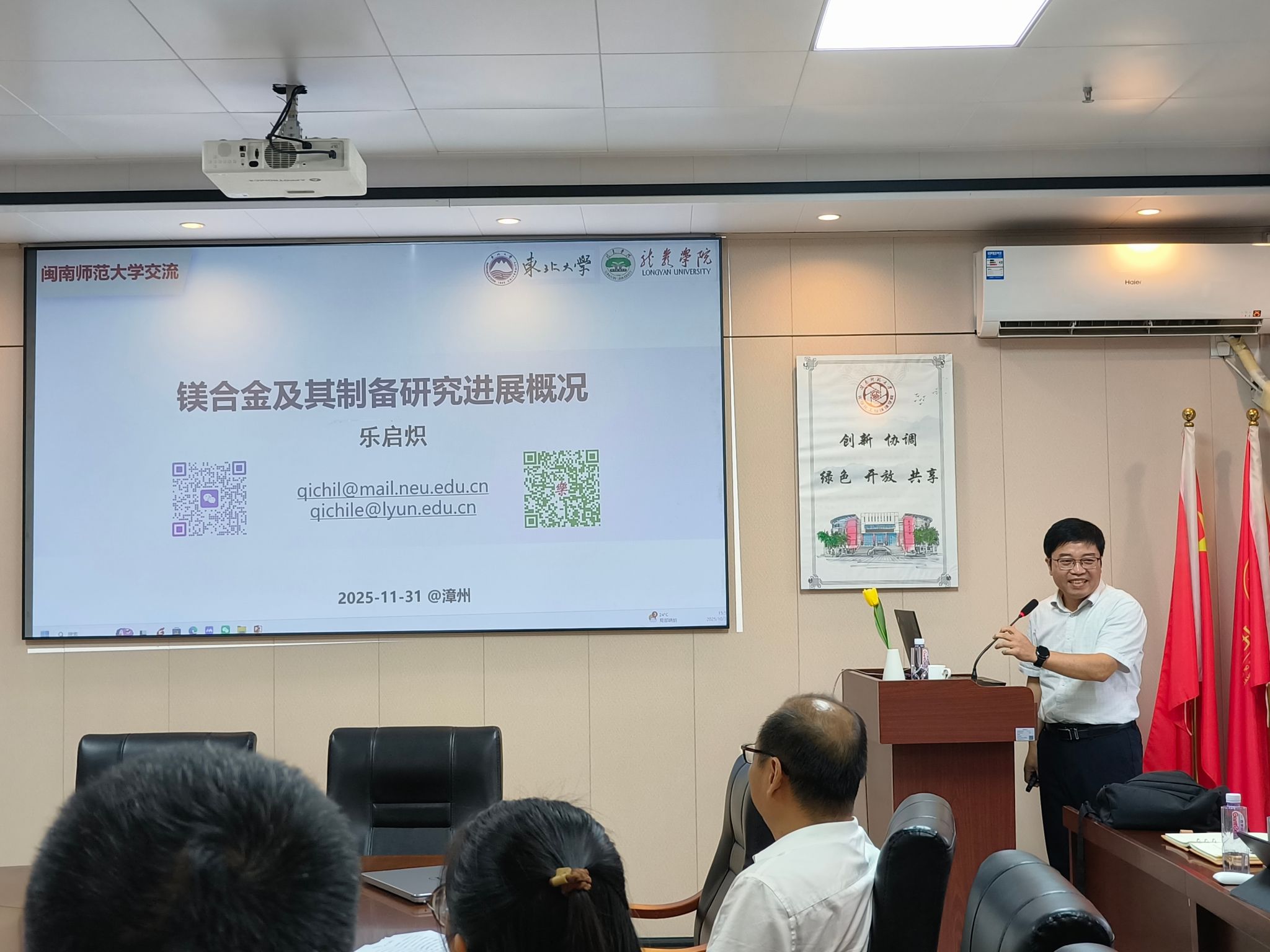 10月31日下午,东北大学/龙岩学院乐启炽教授莅临我院,于科技楼北1103会议室为我院教师带来了一场主题为“镁合金及其制备研究进展概况”的讲座。本次讲座由我院党委副书记、院长张茂升教授主持,现场学术氛围浓厚。