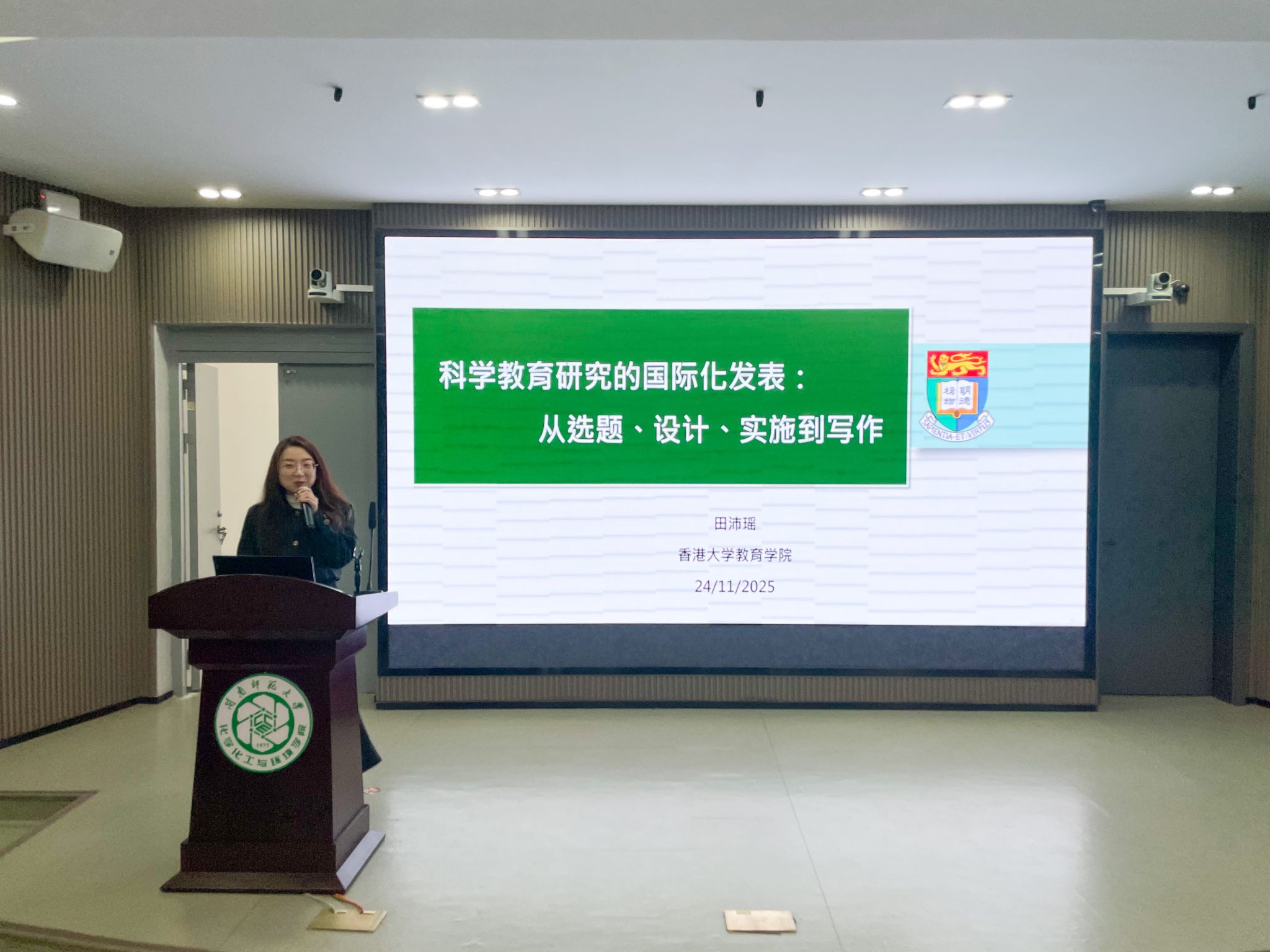 为拓宽学术视野,提升科研能力,2025年11月24日,我院杰出校友、香港大学教育学院博士研究生田沛瑶应邀回到母校,于达理楼南206多功能厅开展了主题为“从问题到论文:科学教育研究的选题、设计、实施与发表”的学术讲座。本次讲座由我院副院长黄旭光教授主持,学院教师、教育硕士、化学师范、科教教育本科生踊跃参与,现场学术氛围浓厚。