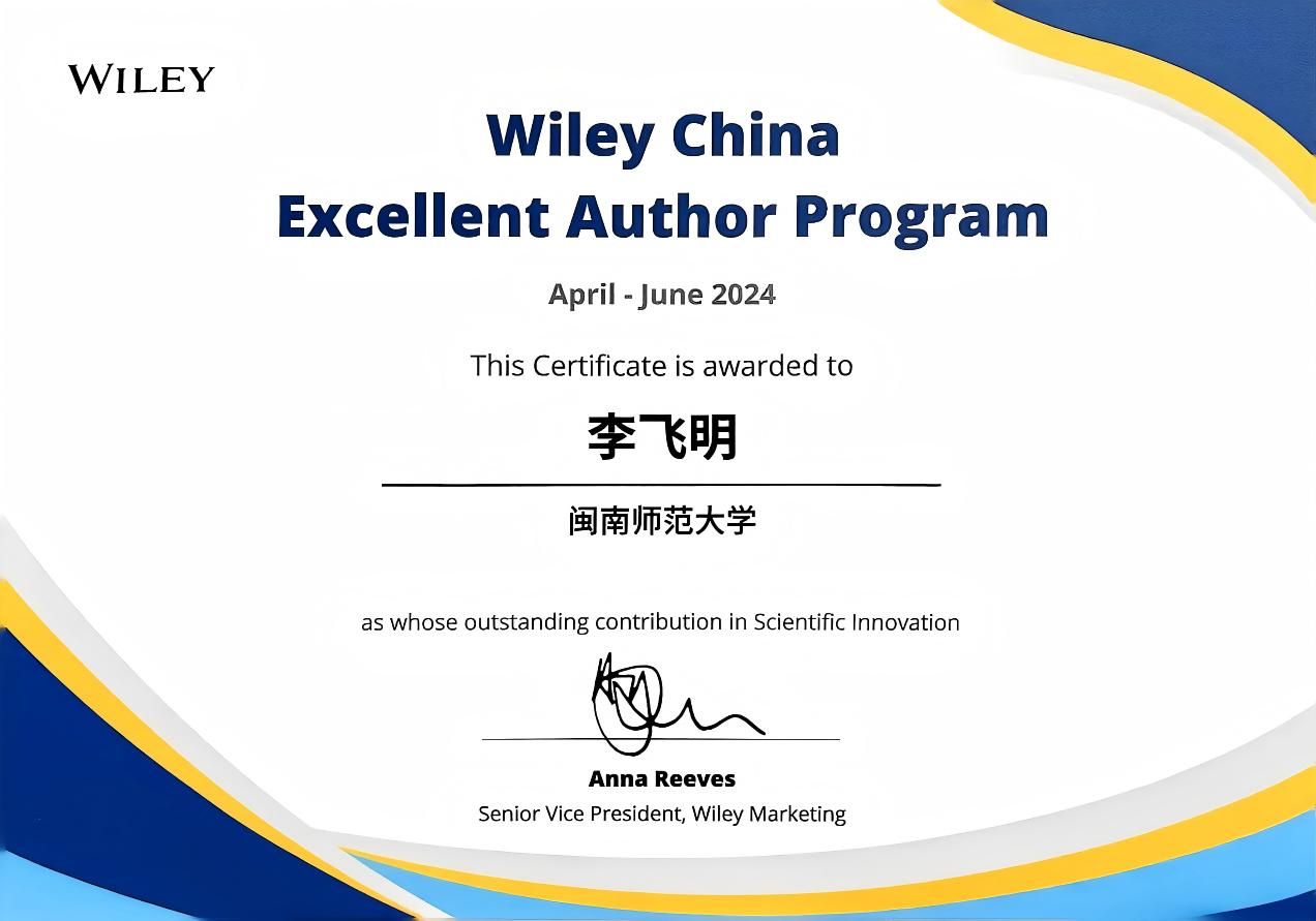 近期,我院MOOM团队蔡志雄教授和李飞明副教授分别获评“2023-2025年度威立Wiley中国杰出作者奖”和“威立Wiley中国高贡献作者”。Wiley是全球历史最悠久、最知名的学术出版商之一。为感谢中国作者在推动科技进步所做的贡献,Wiley中国在广受中国作者认可的期刊中,统计了由中国作者(通讯作者发文机构为中国大陆机构)所发表论文的全文阅读下载量,经过严格评选后授予相应荣誉称号。
