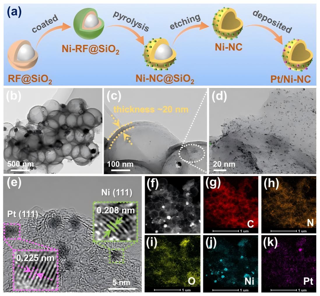 图1 Pt-Ni-C催化剂的合成路线和微观结构表征