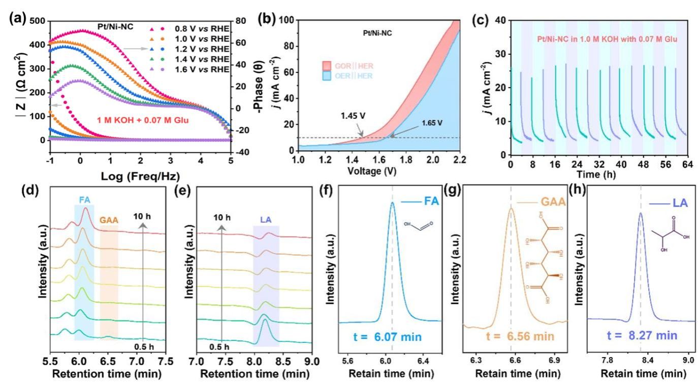 随着全球对可再生能源和绿色化工需求的日益增长,如何在能源转化过程中实现“化学品增值”与“清洁能源产出”的协同,是当前能源化学领域的重大挑战。生物质衍生物葡萄糖的电催化氧化(GOR),能够将其转化为高附加值化学品,同时耦合析氢反应,是一条极具吸引力的双向增值路径。然而,开发兼具高活性、高选择性和稳定性的双功能催化剂仍是当前面临的巨大挑战。近日,闽南师范大学化学化工与环境学院李艳彩教授联合清源创新实验室张颖贞博士后,在《Journal of Colloid and Interface Science》(中科院一区Top期刊)发表最新研究成果,报道了一种具有优异电催化性能的双功能Pt/Ni-NC催化剂,该催化剂在葡萄糖电氧化过程中表现出优异的催化活性和稳定性,同时在阴极侧有效促进析氢反应,实现了电能驱动下的生物质高值化与能源共生产。这一策略打破了传统电解水仅产氢的单一模式,将“废弃生物质”转化为“绿色能源+高附加值化学品”的新途径,为未来可持续能源体系提供了新范式。该催化剂不仅能够高效催化生物质葡萄糖电氧化反应,实现高附加值化学品(乳酸和甲酸)的制备,还能同步促进产氢反应(HER),实现绿色制氢。这项工作为耦合生物质转化与清洁能源生产提供了新的解决方案,展现了“双碳时代”背景下的能源创新方向。通过精确调控Pt与Ni的组分及碳载体结构,制备出高分散的Pt-Ni纳米催化剂。