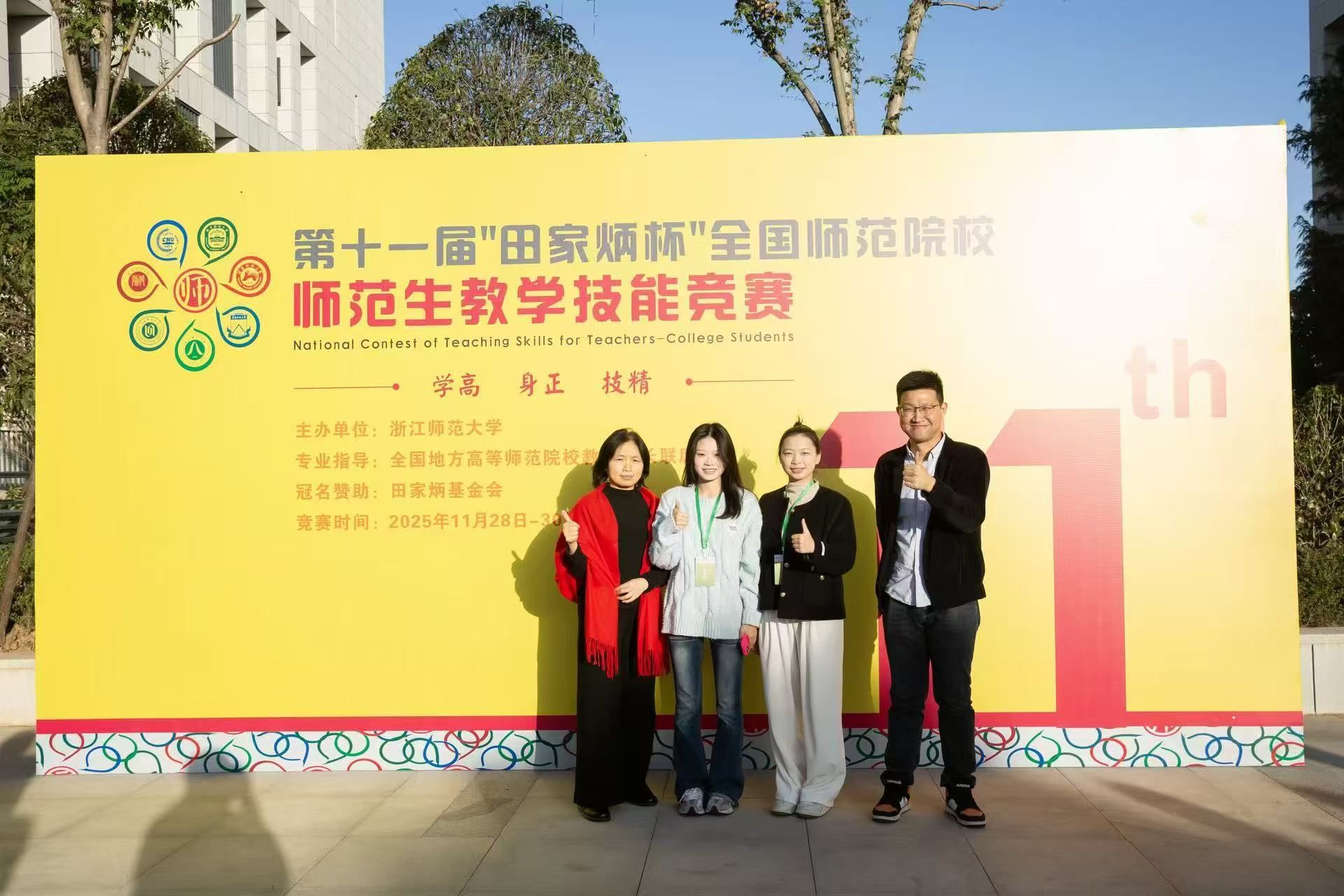 2025年11月28日至11月30日,第十一届“田家炳杯”全国师范院校师范生教学技能竞赛决赛在浙江师范大学举行。我院自4月份组织学生报名,通过学生导师双选、院初赛、决赛及校赛等一系列系统化备赛举措,从90名化学专业本科生中遴选出两名选手参赛,最终凭借导师的辛勤指导与选手自身过硬的师范专业技能素质斩获佳绩。其中,由姚碧霞、莫亚楠与陈文婷老师指导的练晴晴同学获化学组全国一等奖;由郑轩、汪庆祥与邹泽华老师指导的罗楠同学获初中科学组全国二等奖,创学院参赛以来最佳成绩。